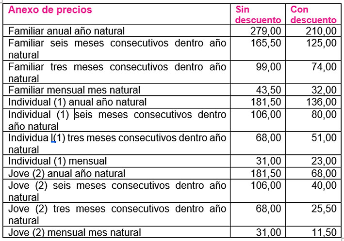 * Para los abonos familiares todos los miembros de la familia deben estar empadronados en el Municipio.