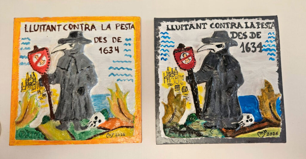 Las piezas han sido elaboradas una a una por la artesana alfarera Margalida Pastor, natural de Sant Jordi, en barro y con un esmalte policromado que remite al origen histórico de la fiesta, vinculado a la epidemia de peste que asoló Palma en el siglo XVI.