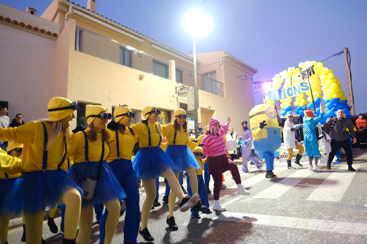 En la categoría de Comparsas, el primer premio (dotado con 700 euros) ha sido para ‘Los Tribu-hos’, seguidos por ‘Papirofesta a Ses Quarterades’ y ‘Los Colibrís de la Pantera’. Por su parte, en la modalidad de Carrozas, la propuesta ‘Salson Ferrer’ ha obtenido el máximo galardón de 700 euros, mientras que ‘Quin Kristo’ y ‘Els Minions de Palmanova’ se han llevado el segundo y tercer premio respectivamente.
