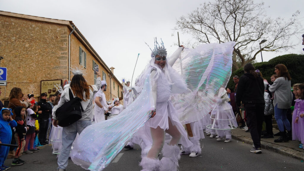 La mayoría de comparsas eran de Marratxí, aunque también han participado grupos procedentes de Palma. Entre los más animados se encuentran la comparsa del Espai Jove de Marratxí, acompañados por la batucada Kalemba, que han duplicado su participación respecto al año pasado, con alrededor de 40 personas representando un “Ice World”, personajes con coronas de hielo punzantes, maquillaje brillante, zancos, bolas de hielo y alas blancas.
