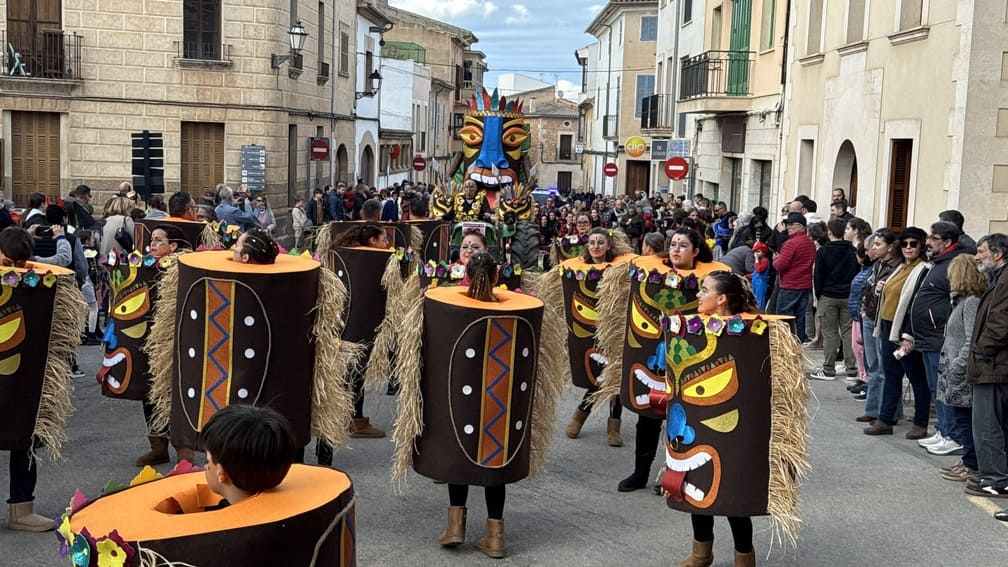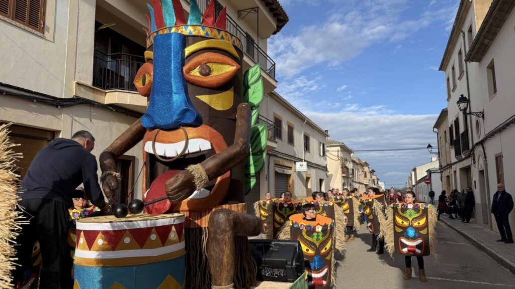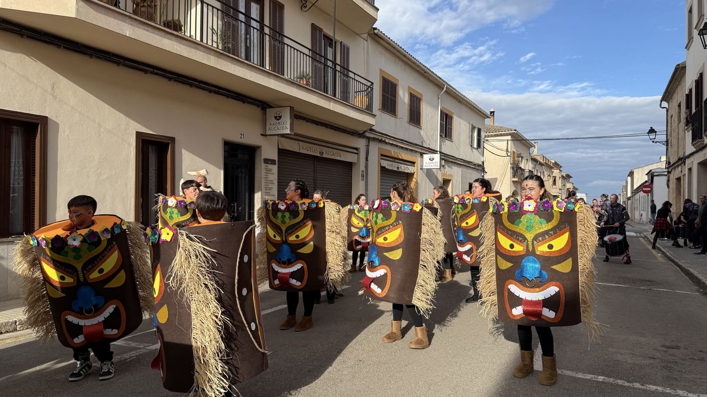 Comparsas y participantes recorrieron el casco urbano en un animado pasacalles. La Banda de Música de Algaida y la batucada local marcaron el ritmo. Música constante. Ritmo contagioso. El público acompañó el desfile entre aplausos y baile, reforzando el carácter participativo de la jornada.