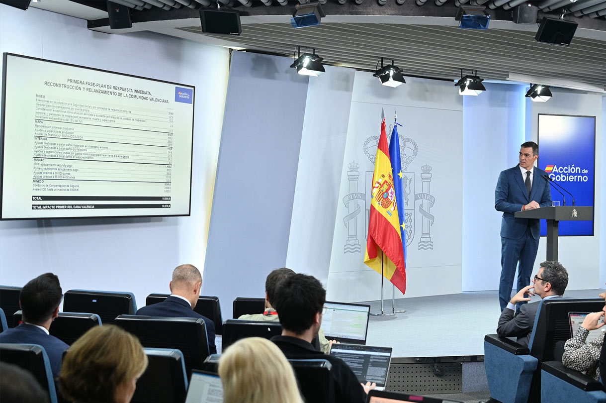 Pedro Sánchez ha anunciado este martes un primer paquete de medidas por valor de 10.600 millones de euros para ayudar a hogares, empresas y ayuntamientos afectados por la DANA.