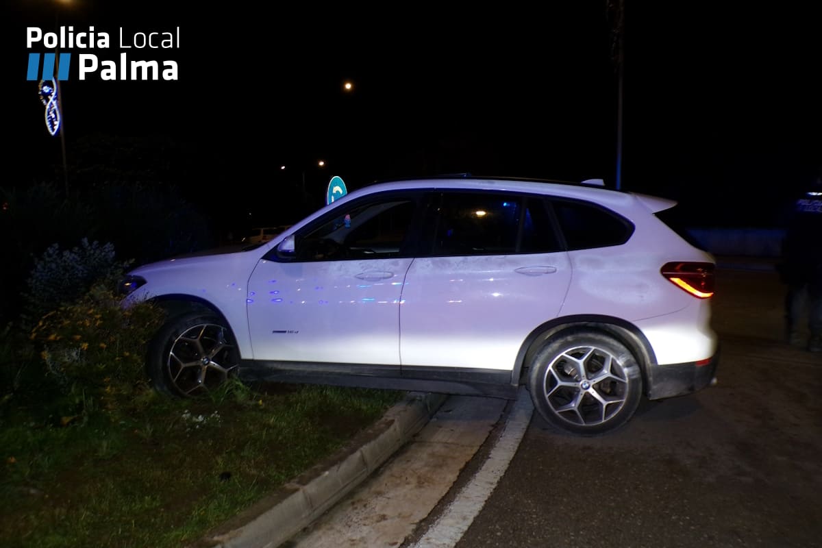 Un joven de 26 años terminó detenido tras estrellar su coche en la rotonda de Pere Cabrer, conducir con una elevada tasa de alcohol y atacar a los policías que intentaban intervenir.