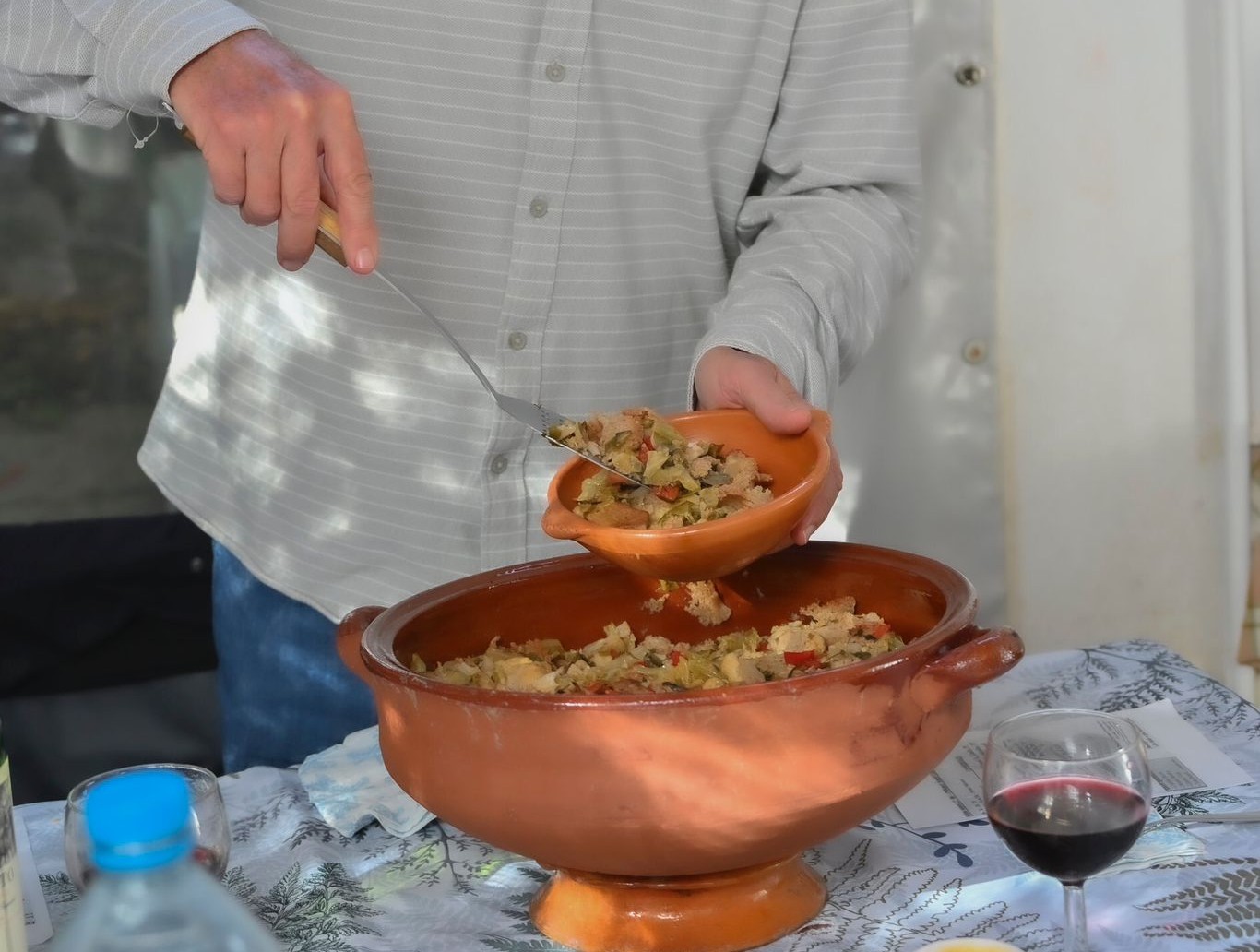 Les confecciona d’un dia per l’altre. Després d’haver cuit la verdura, a la base de la greixonera hi posa pa i després va fent sostres entre verdura i pa. Al final hi tira al damunt el brou que queda i hi afegeix un raig d’oli verjo. Després, que reposin.