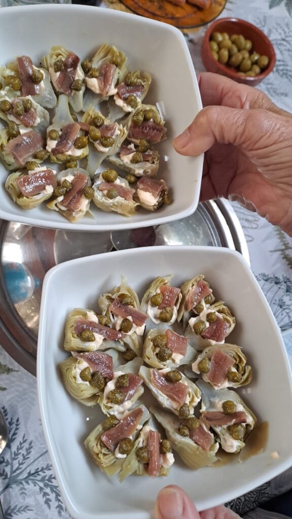 Explica que el primer que li ensenyaren fou, precisament, a fer sopes; però reconeix que després ha cuinat poc, llevat de quan se va jubilar i va retornar a aquelles coses que havia après de petita i de jove, veient sa mare, la meva tieta Anita, molt bona cuinera i, especialment, pastissera. Curiosament, n’Anna, confessa que no li van bé els dolços, llevat del tambor d’ametla, del qual avui n’ha donat excel·lent prova.