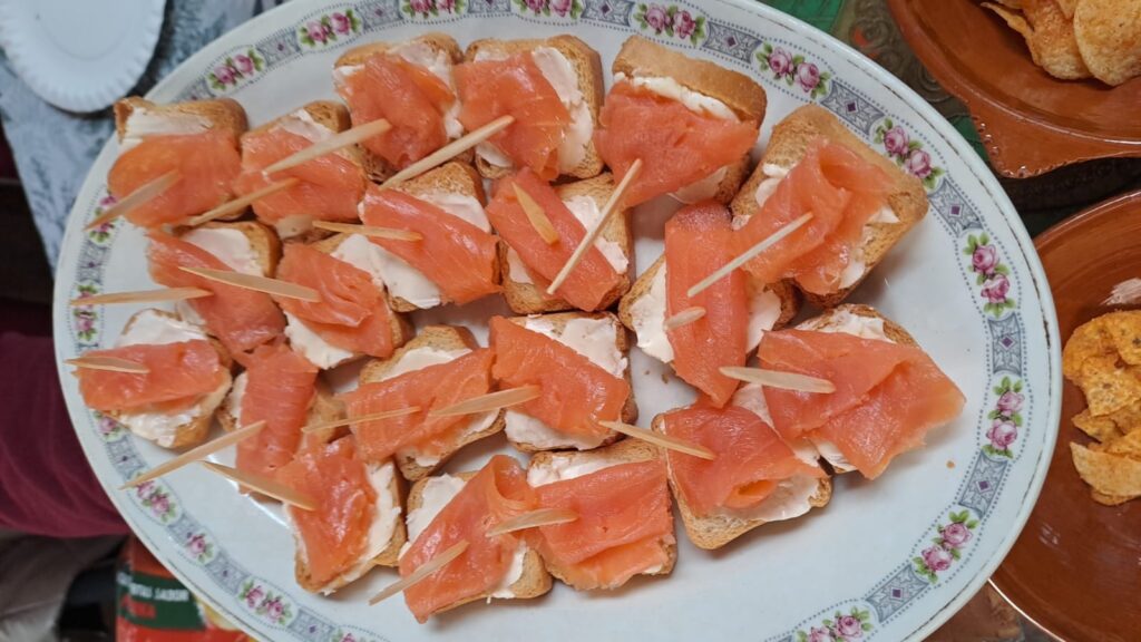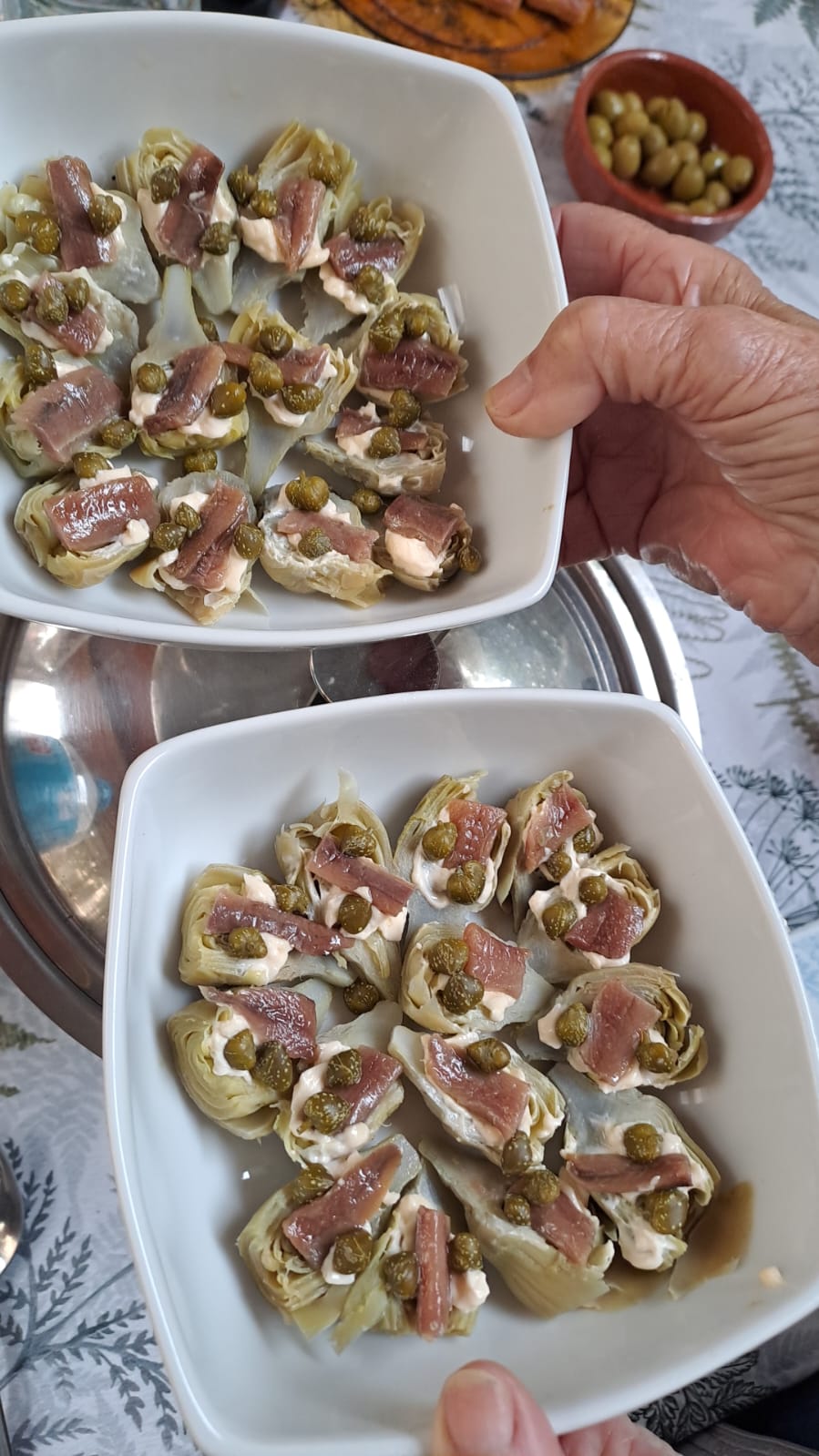 branques. Als snacks no hi falten les olives coentes, recorrent tema de conversa, per més