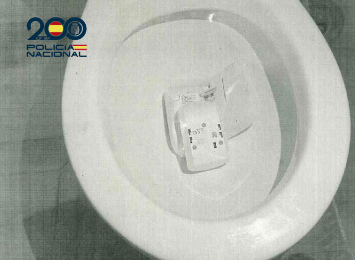 Al llegar un trabajador de la central de alarmas, se realizó una inspección de la vivienda. El policía nacional y el trabajador vieron que la puerta estaba dañada y que se había lanzado al inodoro, tras fracturarlo, el sistema de alarmas.