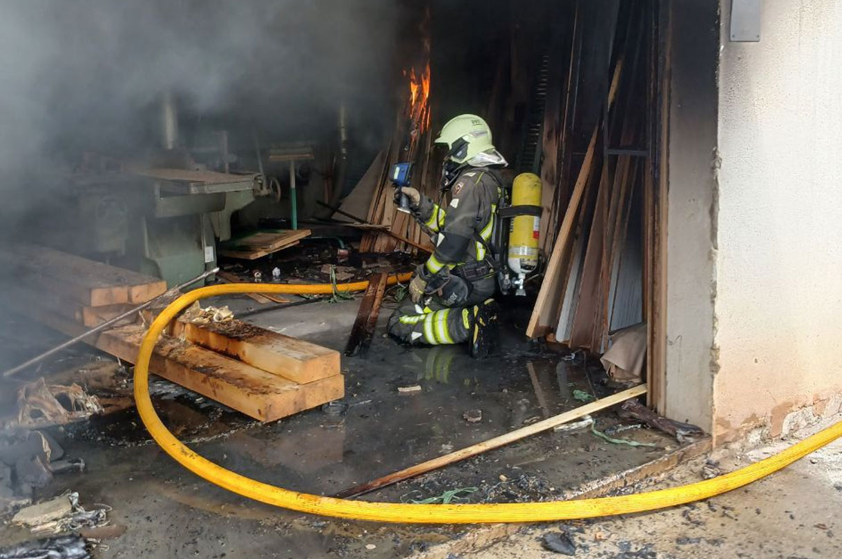 Una carpintería envuelta en llamas moviliza a 20 bomberos en la tarde del sábado.