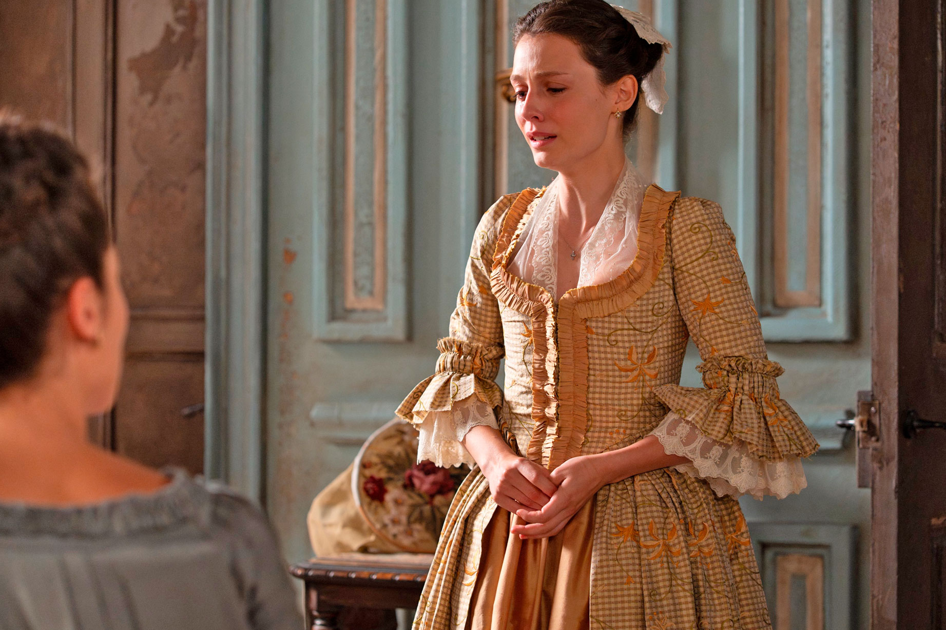 Bárbara, humillada por don Hernando frente a todos, contiene las lágrimas.